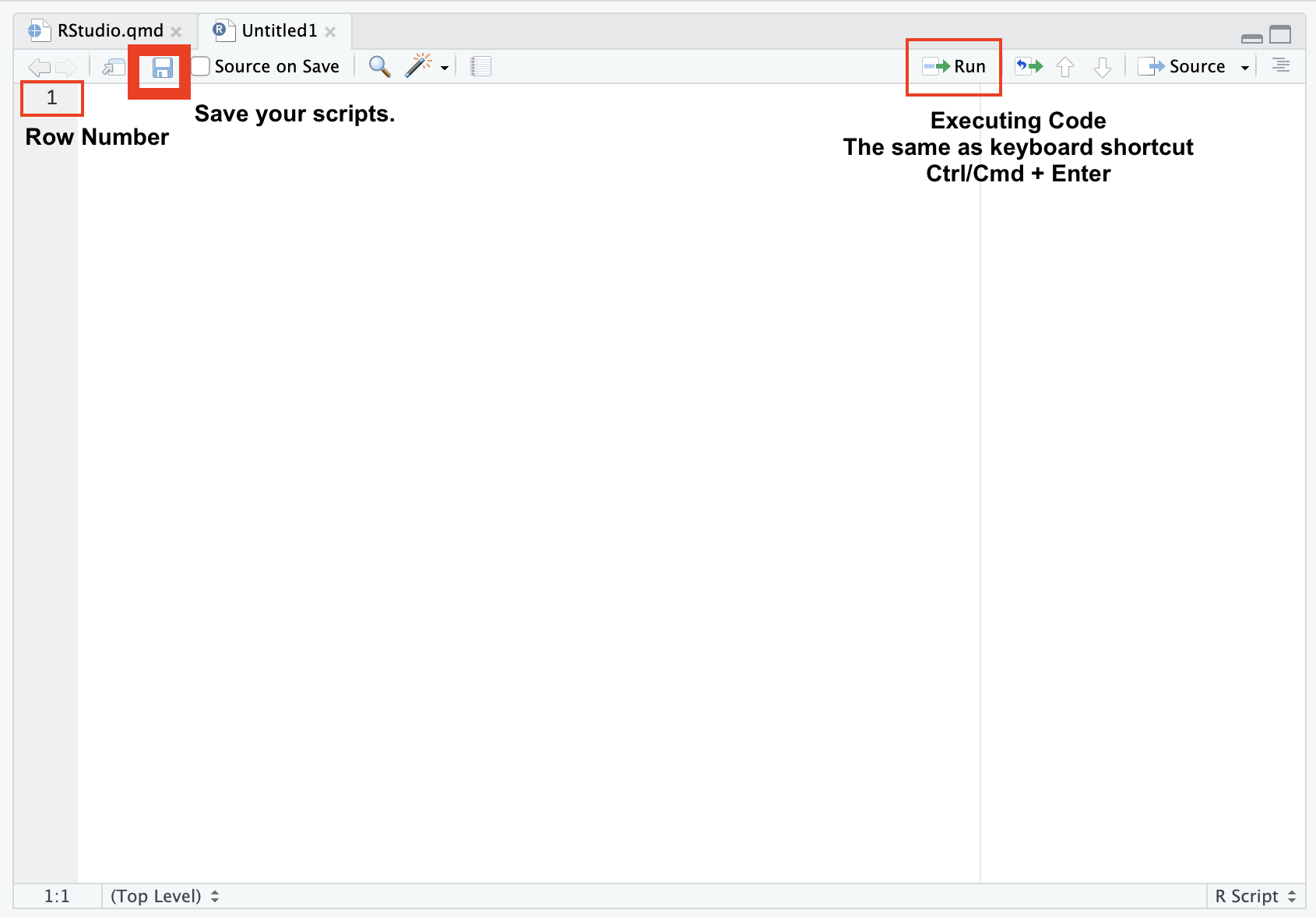 To run code from the Source Editor, you don’t just hit “Enter.” Instead, you use a specific keyboard shortcut to “send” the code from your script down to the Console: