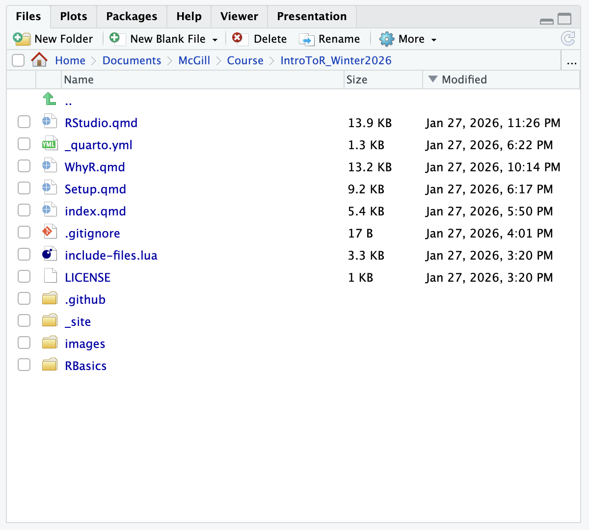 • If you are analyzing your results and want to show your PI a visualization along with your interpretation: Use Quarto (.qmd) or R Markdown (.Rmd).