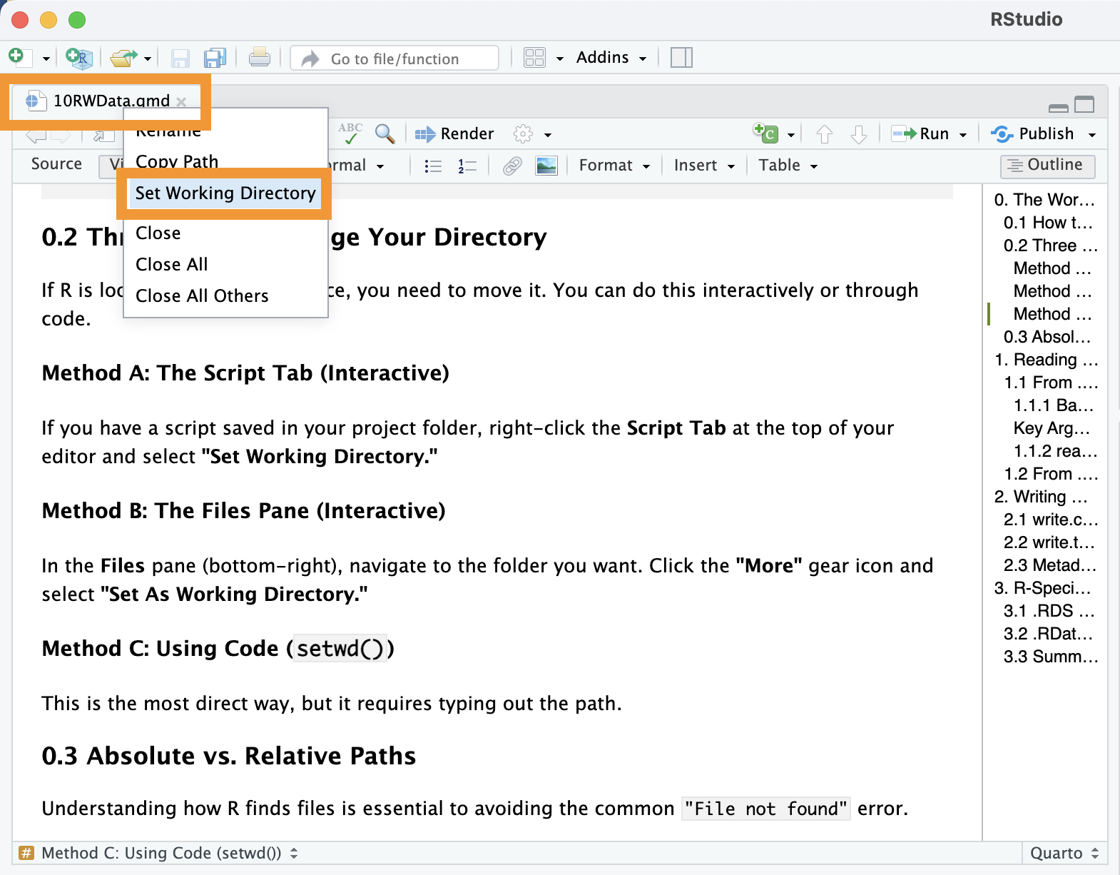 Method C: Using Code (setwd())