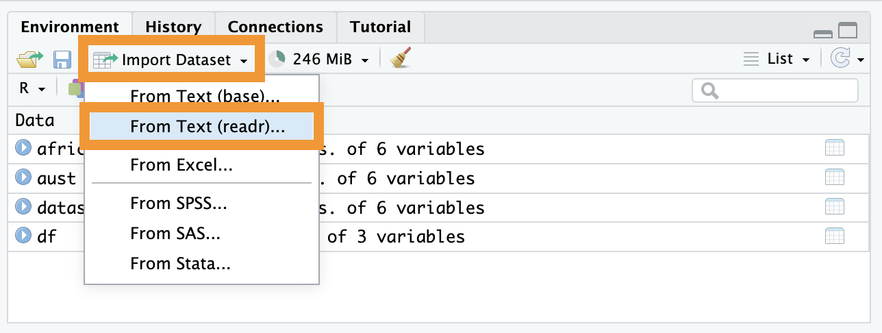 If you are a beginner or can’t remember the exact path to your file, use the Import Dataset button in the Environment panel (top-right).